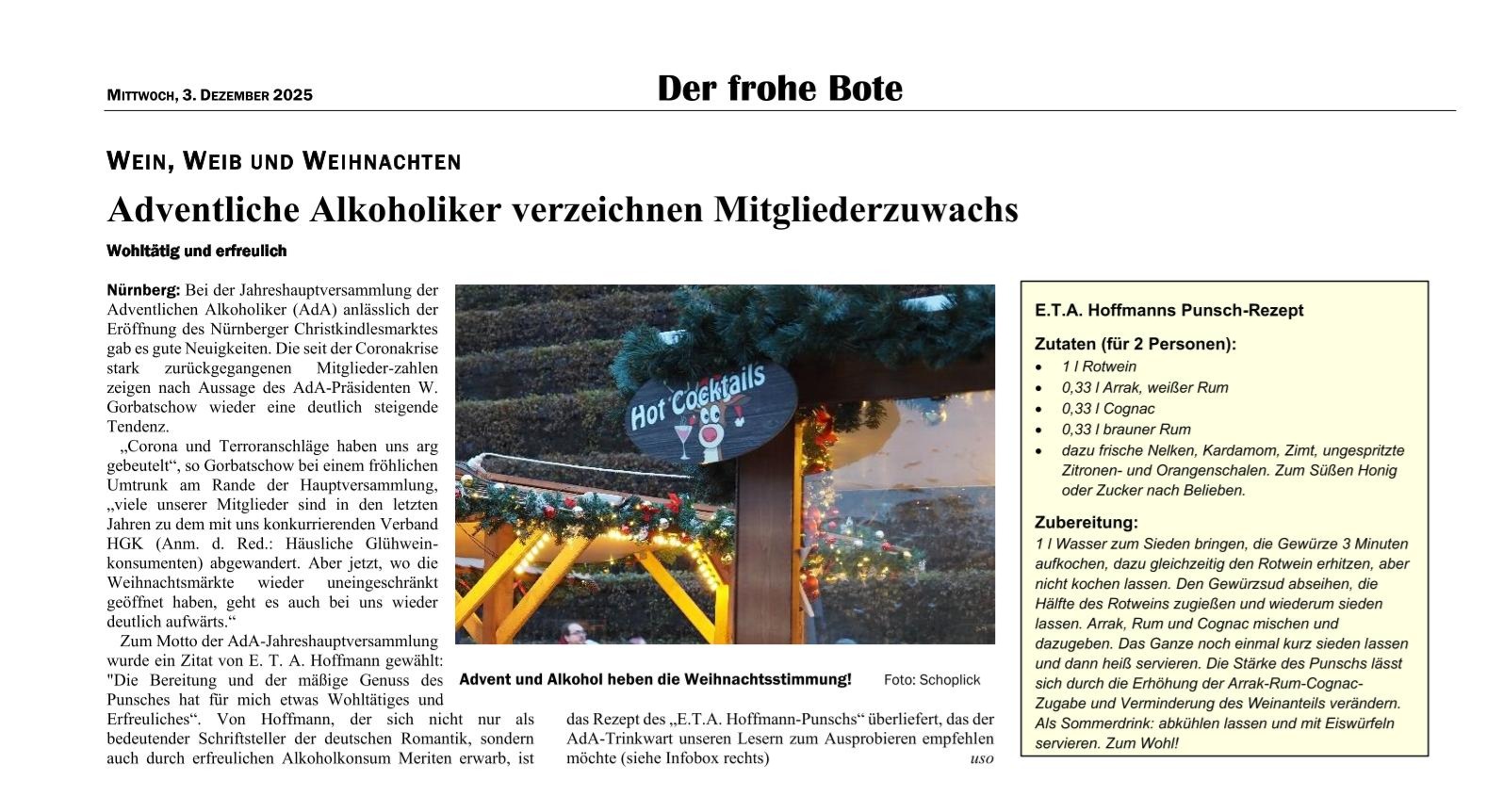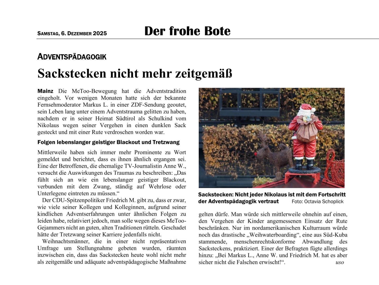 Warnung! Der Adventskalender kann Spuren von Satire enthalten. Nebenwirkungen sind bei Humor-Unverträglichkeit nicht ausgeschlossen!